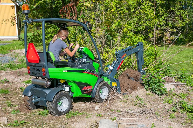 Avant backhoe 170 is a compact digging unit, intended mainly for Avant 200 series. The main focus in design was user-friendliness and straight forward construction. Backhoe 170 is a small backhoe, which is at its best in tight situations where space is limited. Boom movements are smooth and precise, which makes operation easier also for less experienced users. To facilitate the digging the frame of the backhoe is as low as possible, which gives unrestricted visibility to the work area.