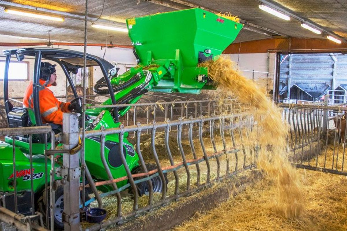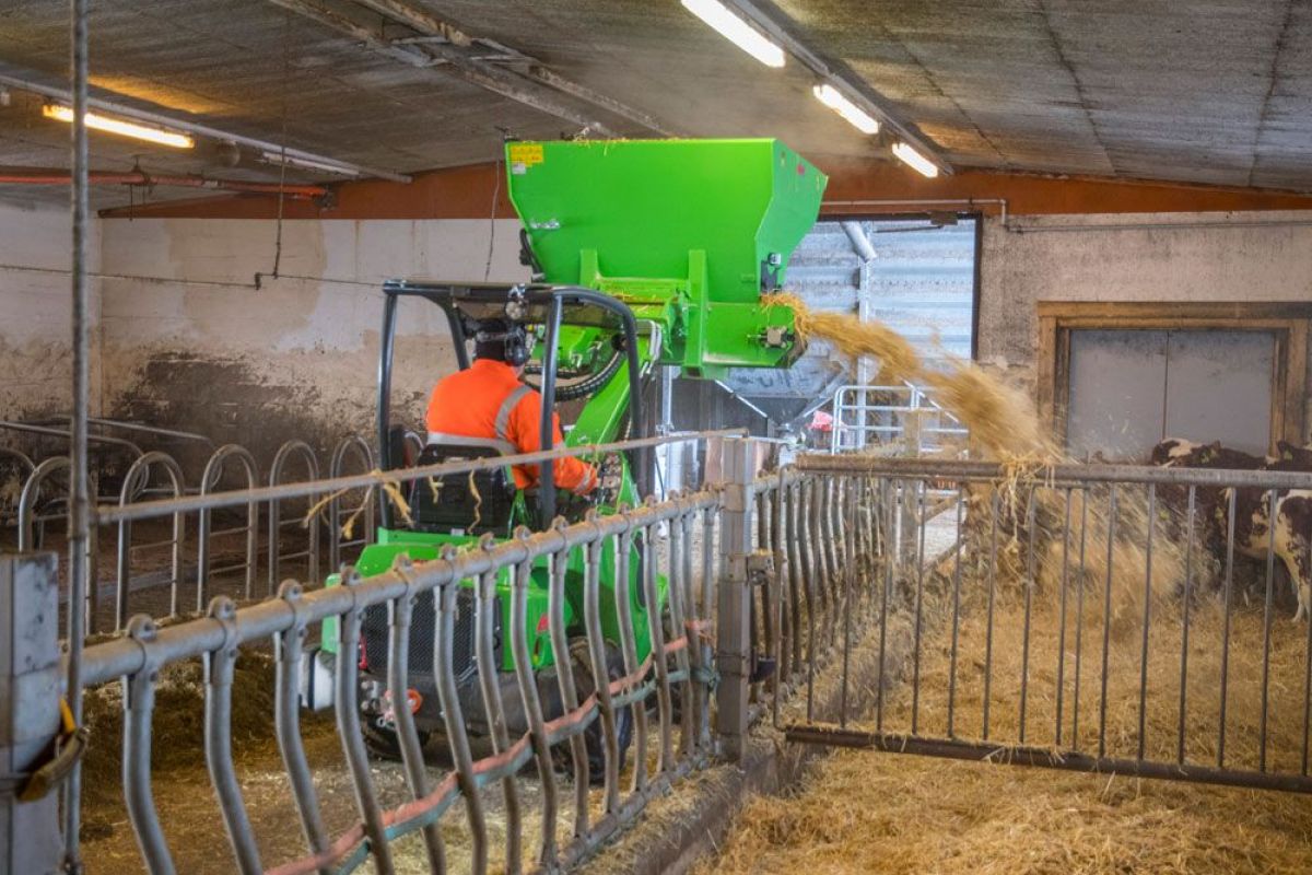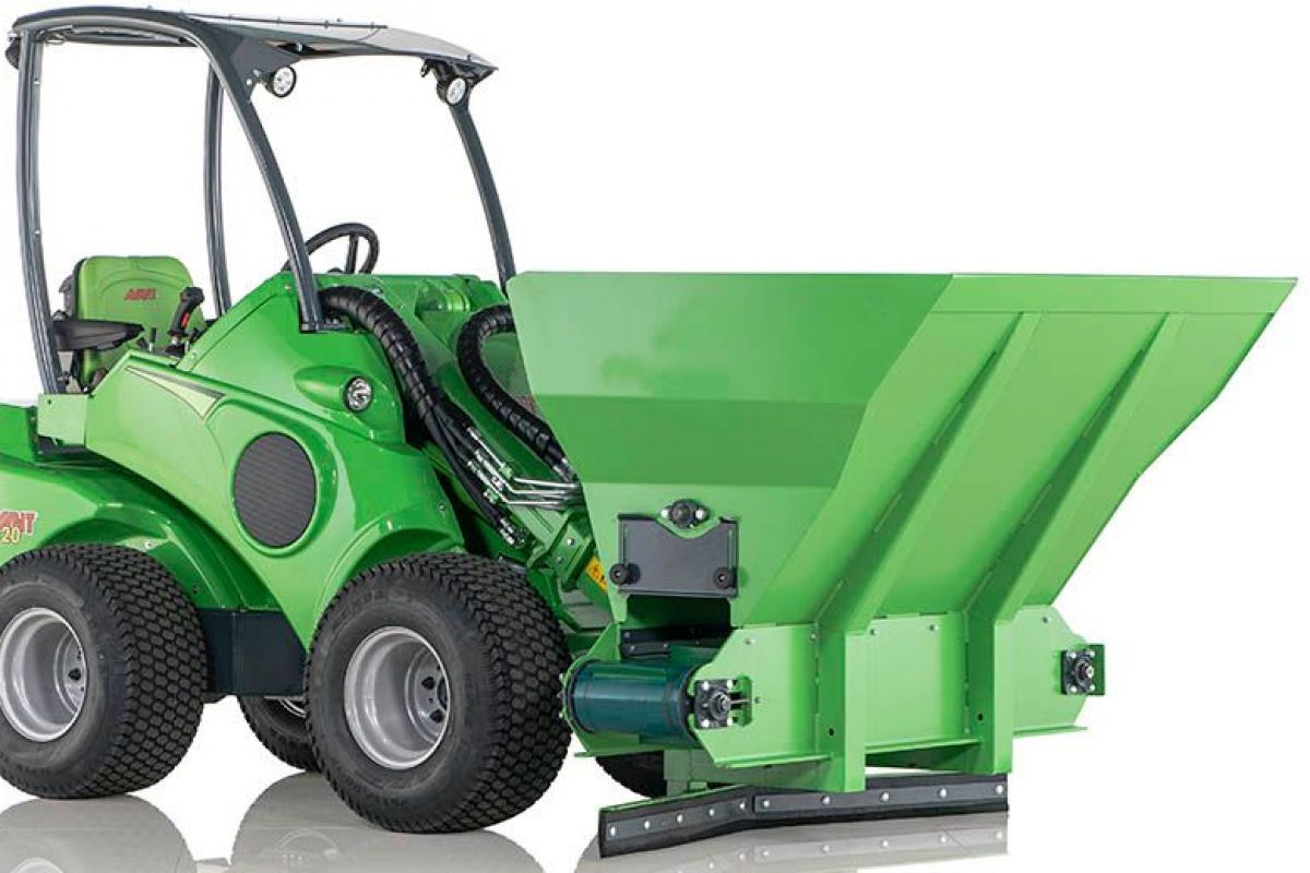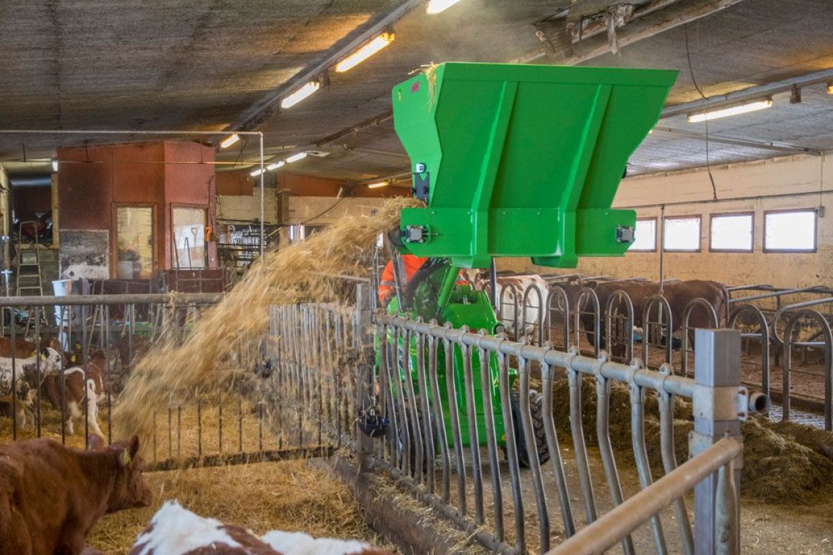 The new bedding distributor bucket is intended for the distribution of different types of beddings in cowhouses, poultry farms, etc. The bucket is equipped with a 300 mm wide belt, which allows the distribution of chopped straw, sawdust, peat, bark, wood shavings, sand, and lime. Belt speed is steplessly adjustable.