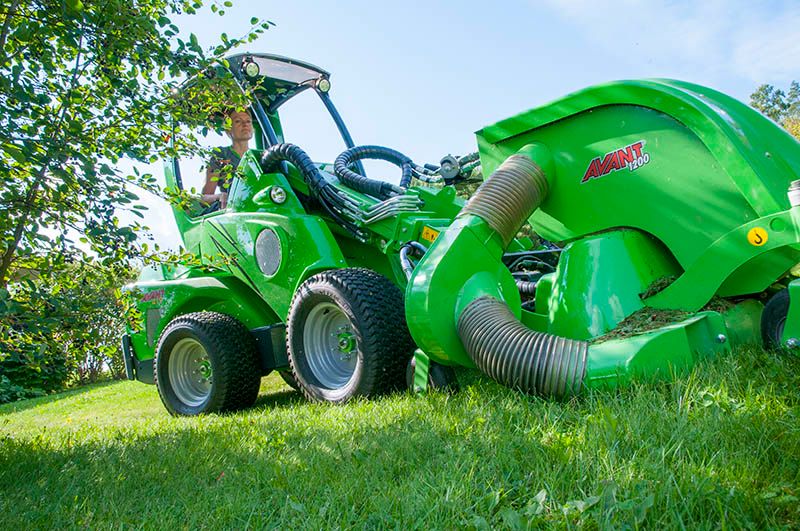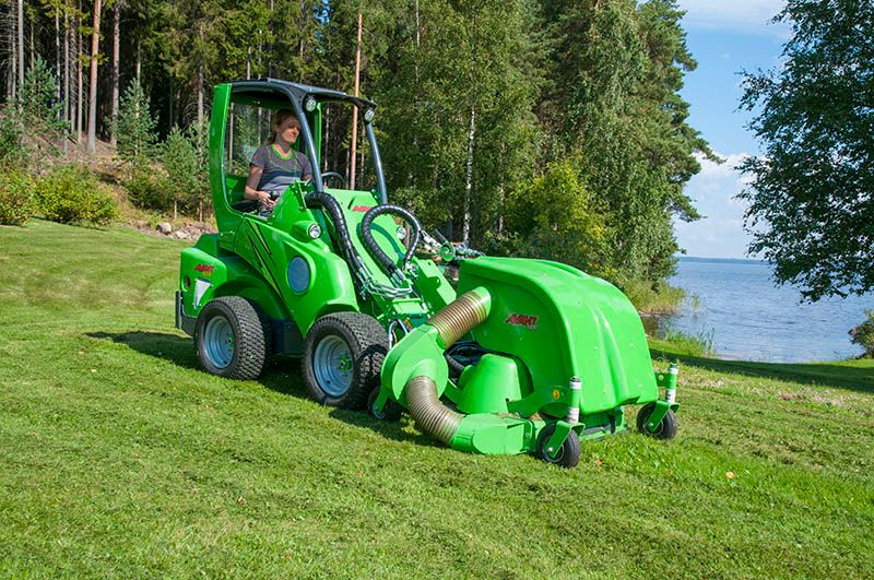 The mulching blades of the mower crush the grass clippings, leaves etc. into a very fine material which then moves to the collector and forms a tight and compact package. The cutting waste is ideal material for composting. Collector capacity is as big as 210 litres, which enables cutting of small to medium sized areas. Emptying of the collector is very easy: lift the mower up from the ground with Avant’s boom and then tilt the mower downward so much that the grass waste pushes the lid open and the waste comes out.