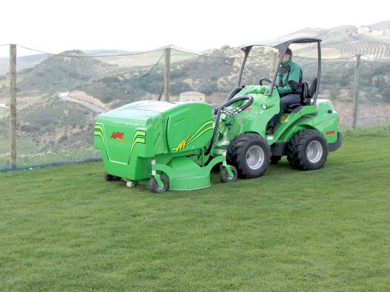 Collecting mower designed for professional use with 1500 mm cutting width and 800 liter collector box.