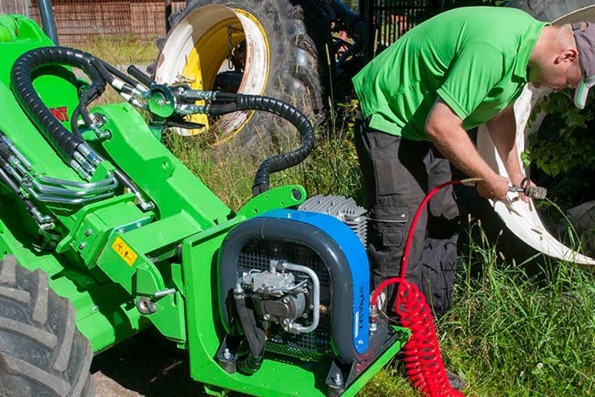 - Makes it possible to fill large tyres (agricultural & construction machines for example) in places where electric current is not available