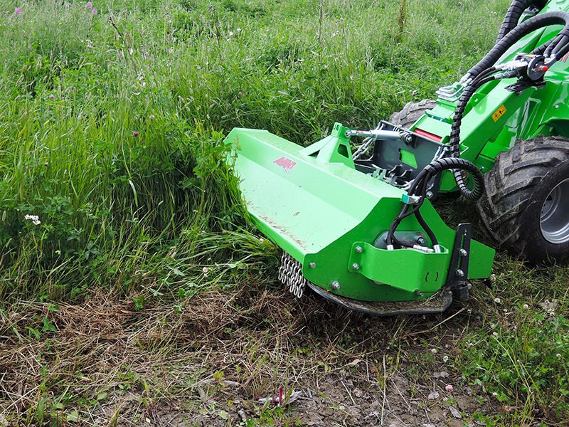 Flail mower is the optimal cutting device for places where you need a lot of cutting power and a rougher cut will do. The most common applications for flail mower are places with taller vegetation like meadows, road banks, yard areas, etc.