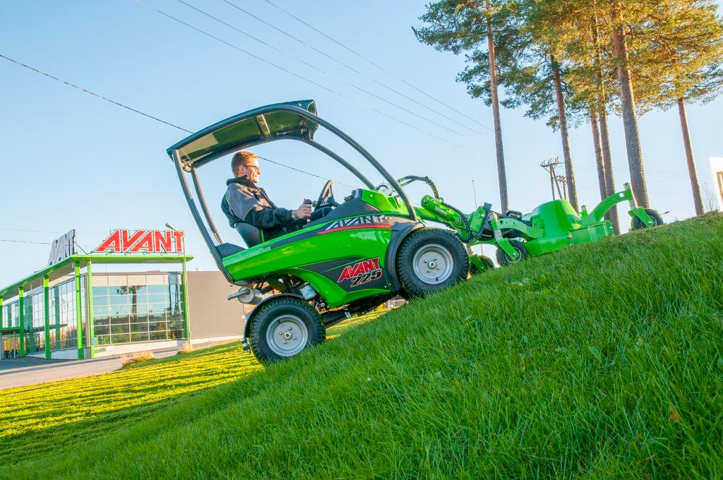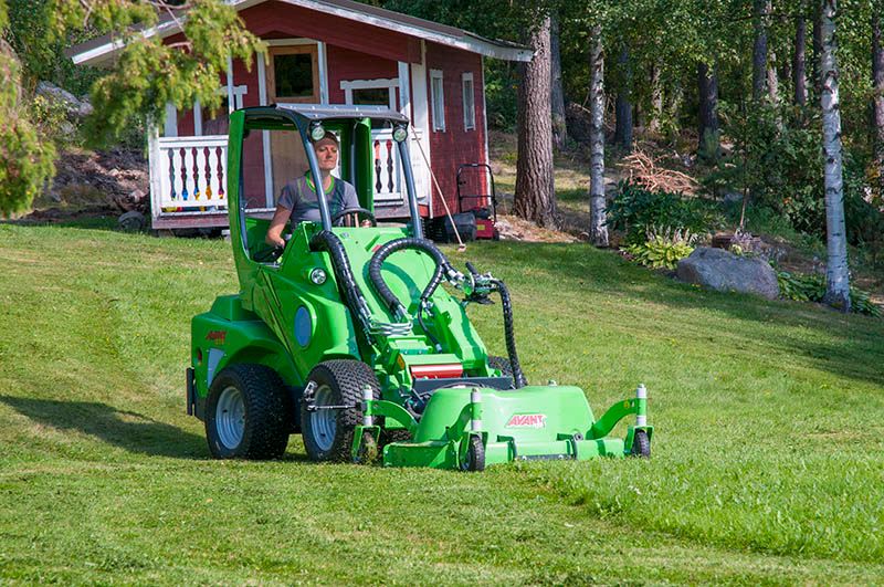 The lawn mower 1200 is a robust and efficient mower deck. It is equipped with the OptifloatTM floating system, developed by Avant, which guarantees optimal touch with the ground also on uneven lawns. Two indicator arrows on the quick attach plate make adjustment of the floating very easy: when the mower is on level surface and the arrows meet, Optifloat™ is adjusted correctly.