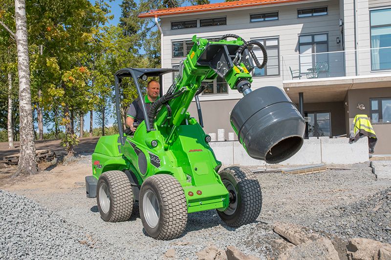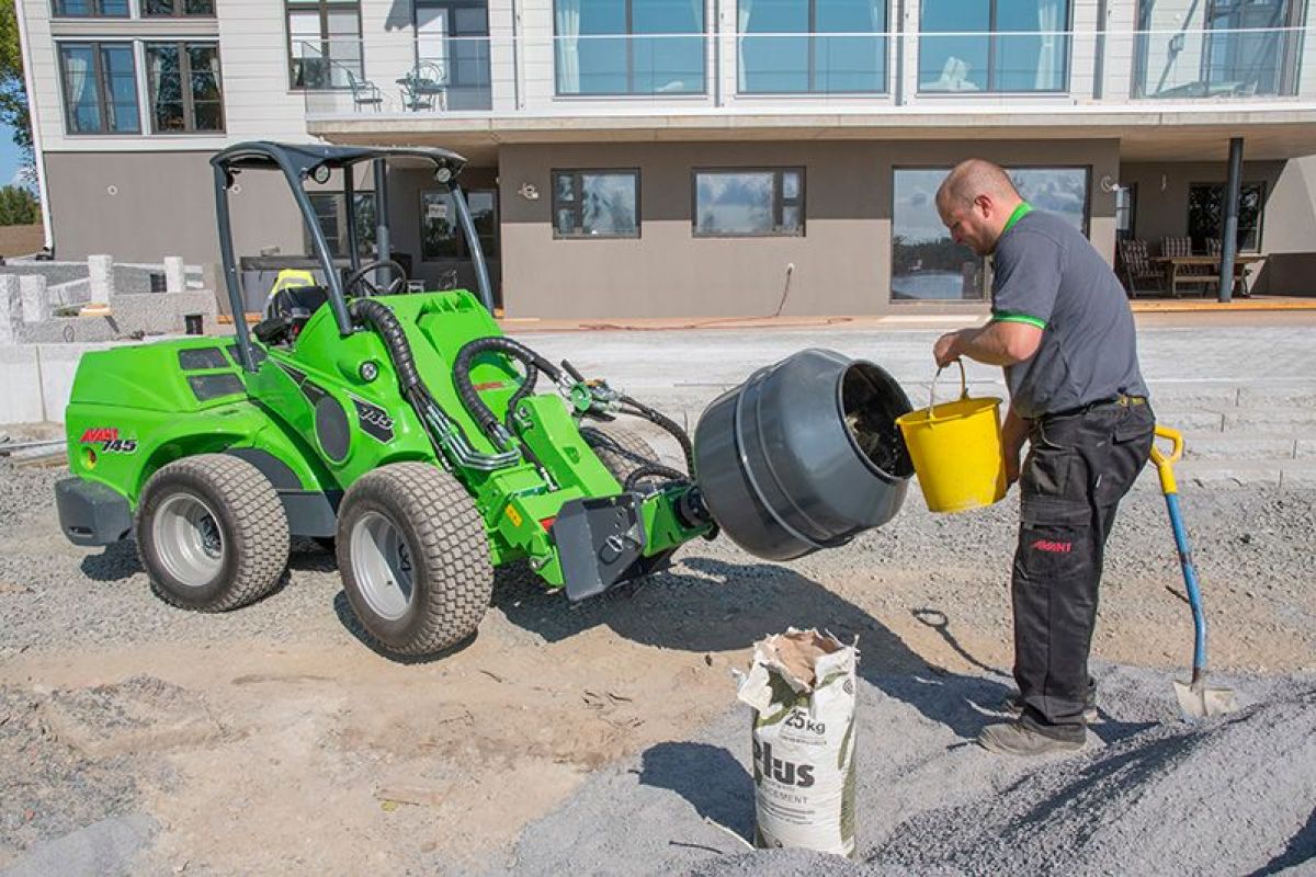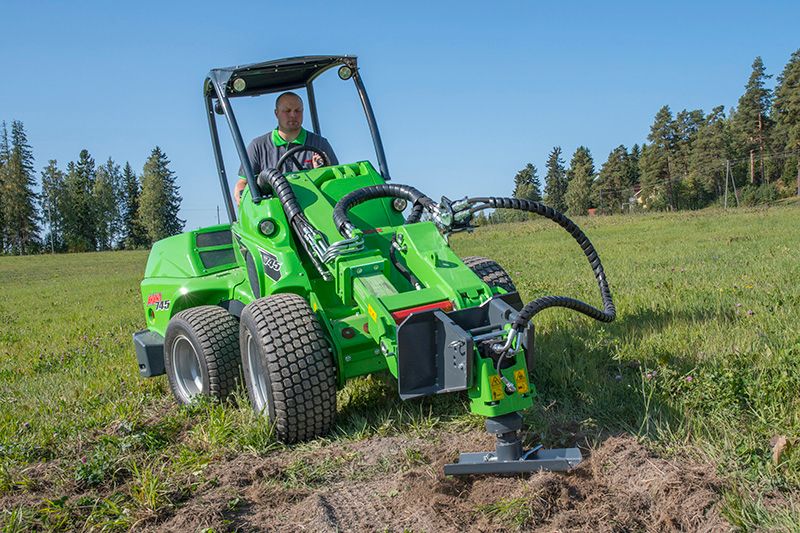 The multi function drive unit can be fitted with auger drills and screw pile adapter as always; in addition there are several other attachments available: concrete mixing drum, screw cone log splitter, screening drum, cable/hose reel, carousel broom, rotary hoe, XL weed brush and XL wire rope brush.