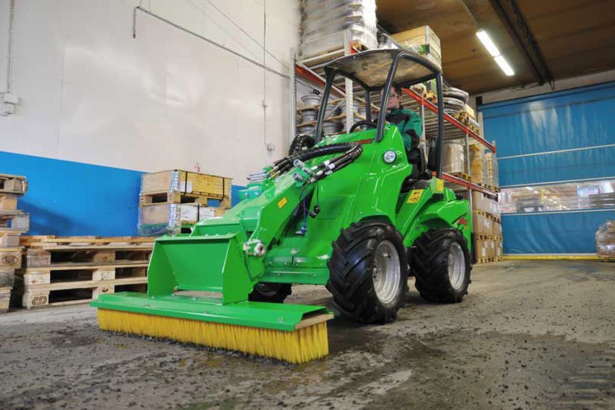 Push broom can also be used when making pavements. By pushing the filler sand sideways across the paving stones the sand will fall nicely between the stones.
