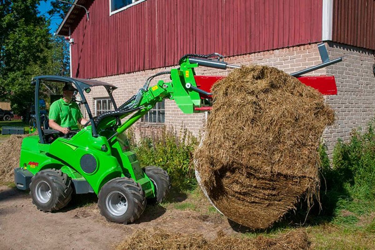 Avant round bale splitter splits also frozen bales which are otherwise hard to handle.