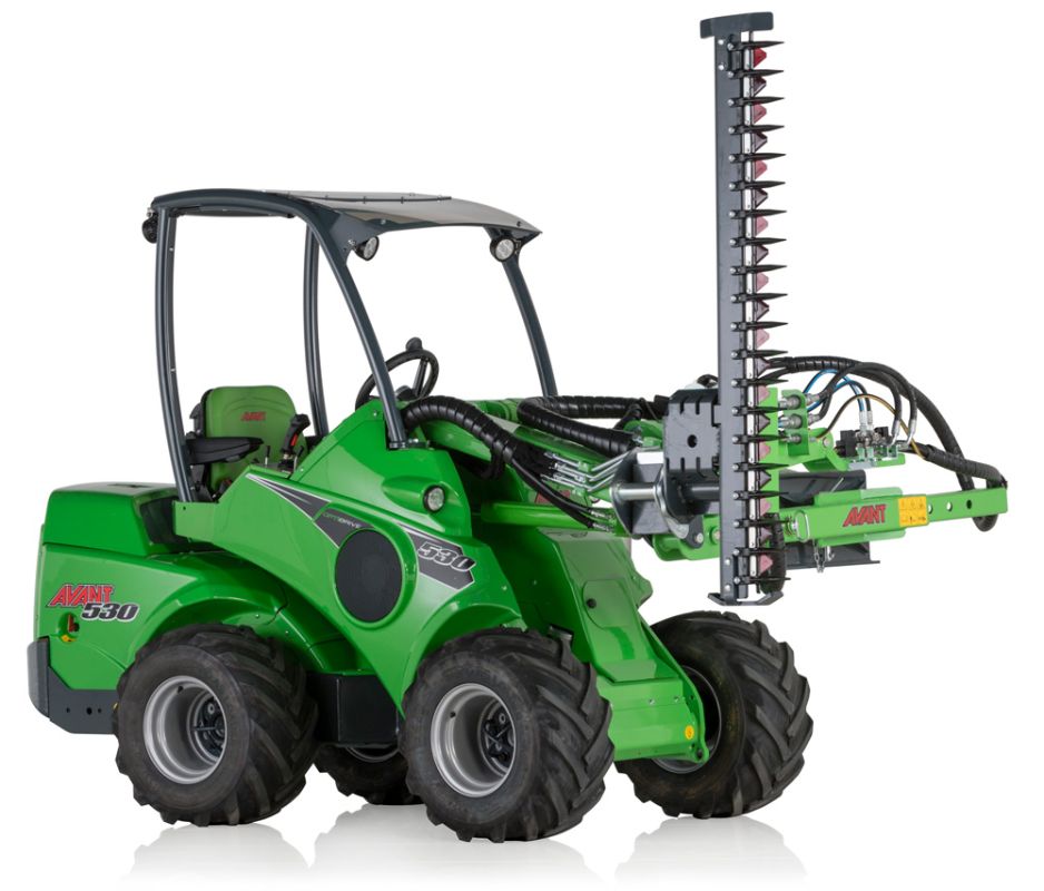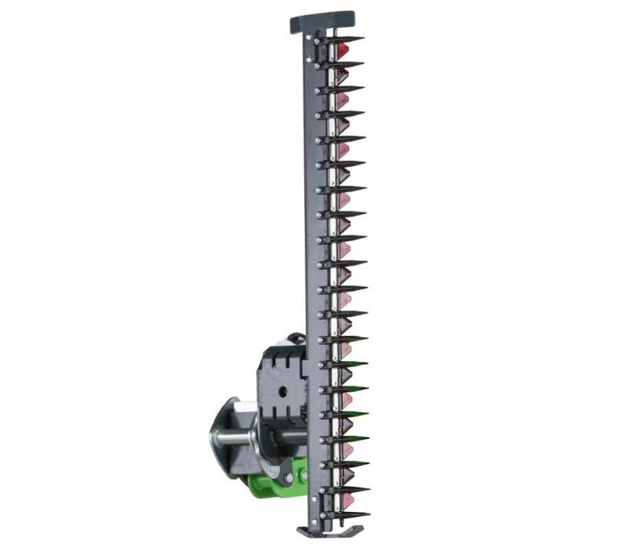 The mounting bracket of the cutting bars is pivoted and locked with a bolt, and can be turned manually in different positions. This gives the possibility to for instance cut the hedge horizontally, vertically and in different angles.The cutting bars are also equipped with a pressure relief valve which protects the unit if it hits an obstacle.