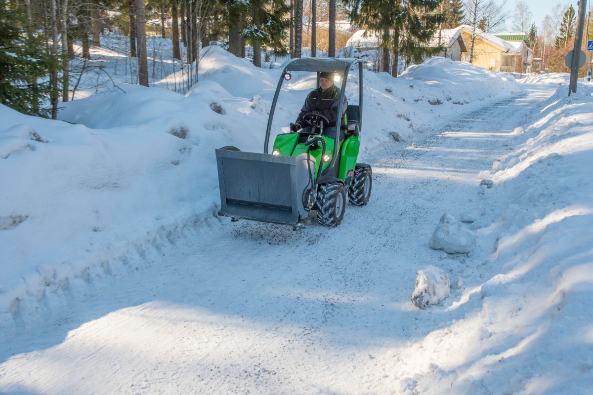 The unit spreads about 200-300 mm wider than the spreader’s own width, and thanks to the smooth movement of the spreading plate there is no risk of causing damage to the objects around (parked cars, buildings, etc.). Spreading speed can be adjusted steplessly with a flow divider valve.