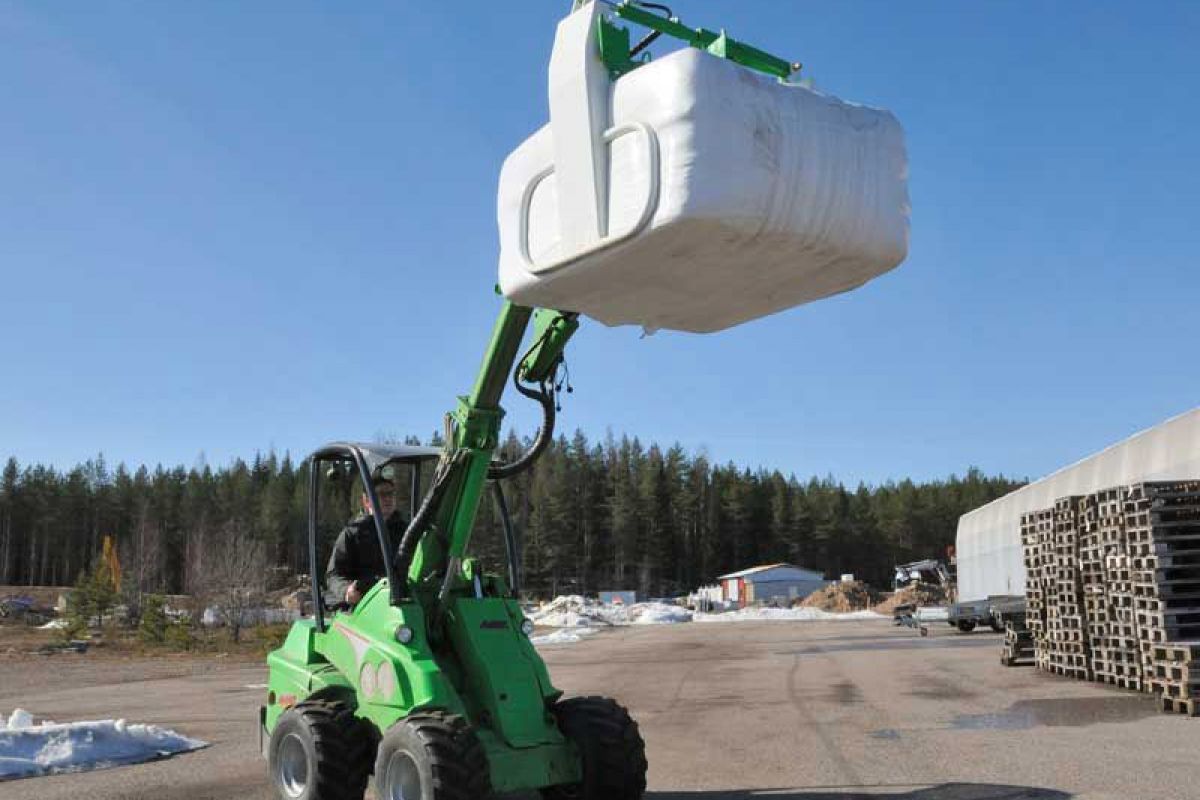 Avant general buckets are designed so that the operator can see the front edge of the bucket from the driver’s seat.