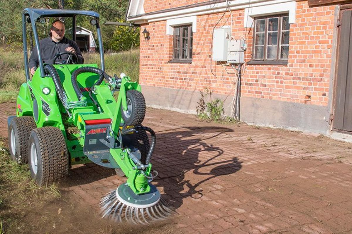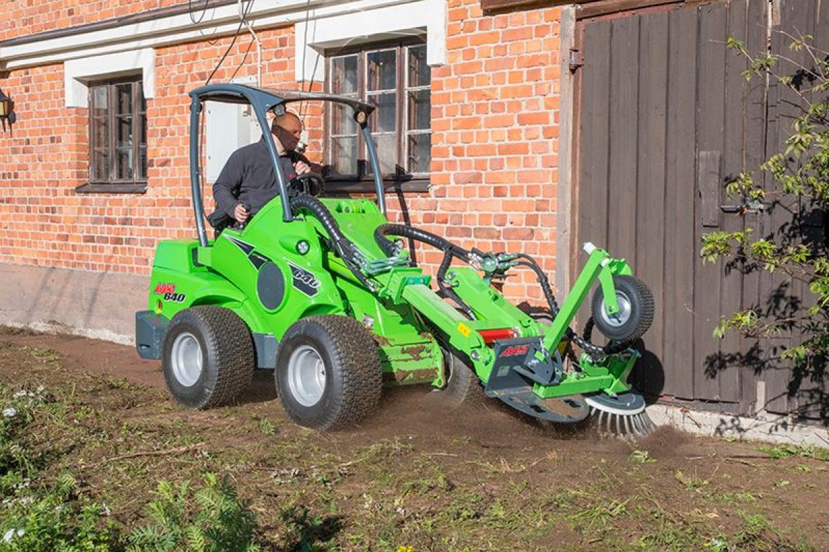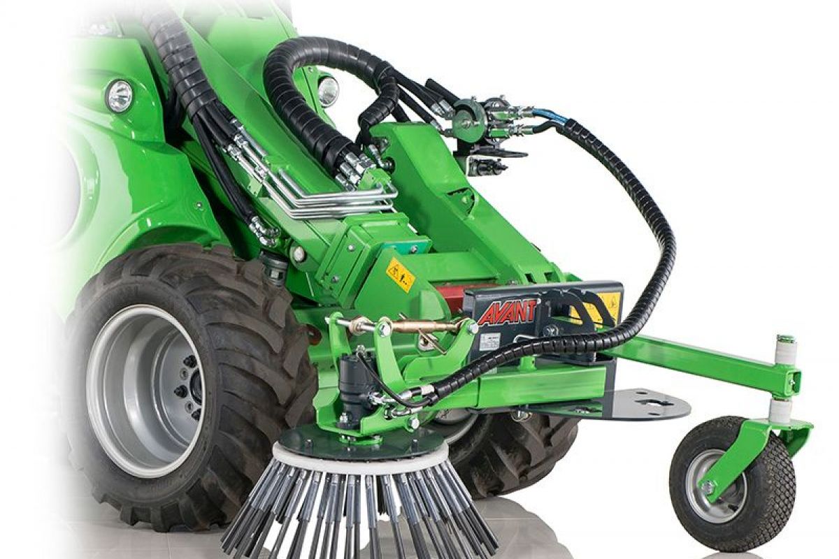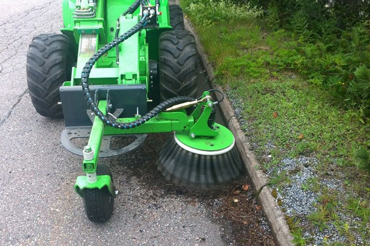Weed brush is an efficient tool for removal of weeds on all kinds of paved areas etc. It is equipped with a steel brush that can be extended manually and turned in three different positions: to the front, to the right side or to the left side. The weed brush is equipped with a support wheel as standard. It can be lifted and locked up to a transport position if needed.
