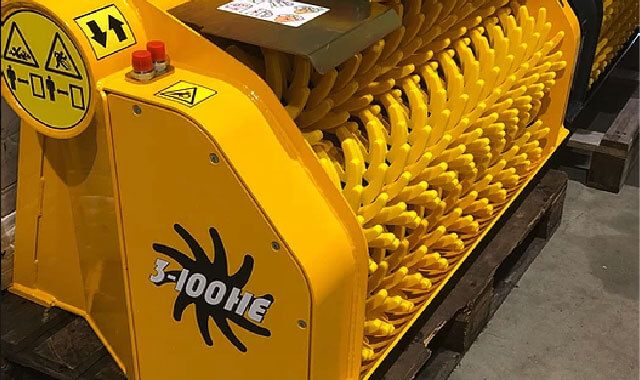 The Gyru-Star 3-100HE, the smallest in the HE range of the Gyru-Star compact screening Family, with three rotating shafts packed with polyurethane flexi- stars 1000mm wide. All HE models can have a loader conversion capability as well as a stainless steel floor option.