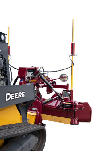 Cut, carry or windrow material forwards or backwards, with twin blades and hydraulic side wings that swivel fore and aft. These heavy-duty wings are designed to cut and trim. Rounded front corners allow the operator to grade up to a curb without damage or spillage.